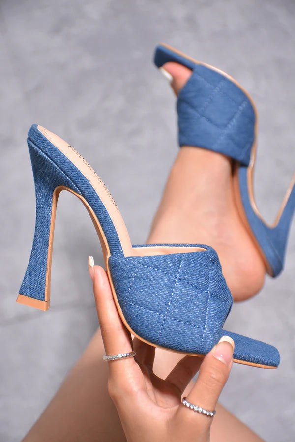 Brenton denim high heels are the definition of style and comfort. The square toe adds a modern edge,while the high heel gives you added height. The padded insole makes the shoe comfortable to wear all day long. Perfect for a stylish everyday look. Get it blue,black,or light blue.
